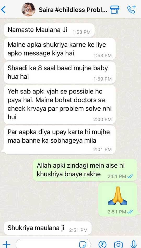 Haaji Barkat Ali Khan Ji has helped me to solve health issues. I was unable to know the reason for my deteriorating health. He suggested remedies that I have performed to recover.